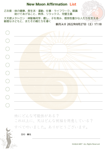 手書き出来るシートには、新月入りの日時と月星座・守護する大天使の特徴をまとめました。