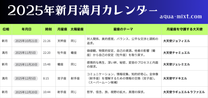 2025年 2026年 月星座と大天使 新月満月スケジュール お知らせ X Facebook はてブ コピー 2025.10.182025.12.01 お知らせこよみ&宇宙のリズム 新月・満月のサイン別テーマと月星座を守護する大天使 大天使の役割や特徴☆公認エンジェルセラピストⓇが解説大天使とは?15大天使?もっと大天使はいる?寛子大天使といったらミカエルが有名ですね。潤治天使はチームワークが大切!いろんな守護分野の天使や守護霊チームと共に人生を切り拓いていけるよ!寛子大天使の情報を加筆していきますので時々こちらの記事を...