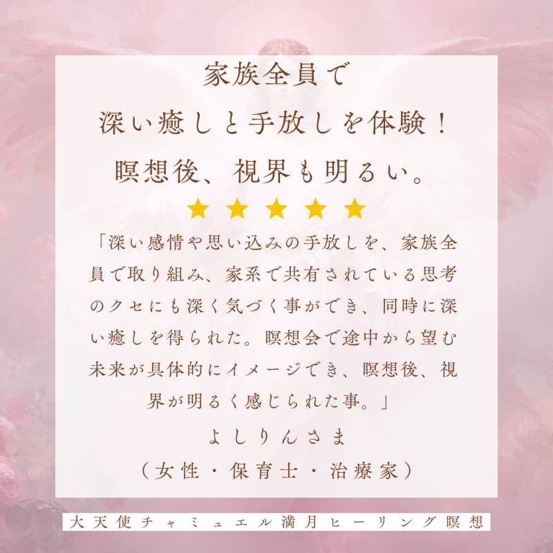 家族全員で深い癒しと手放しを体験!瞑想後、視界も明るい。