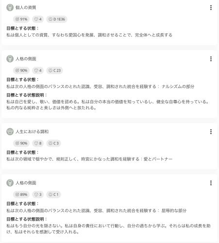 分析結果のアファメーション(肯定的な言葉)は、とても力強いものでした。