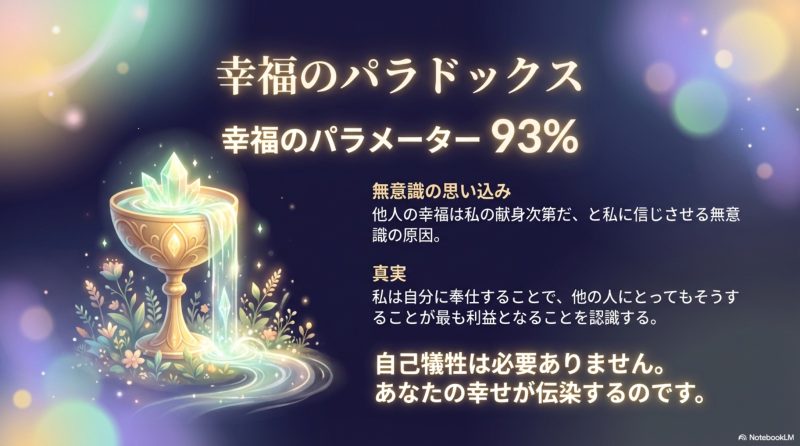 「他人の幸福は私の献身次第」という無意識の思い込み、これが幸福を感じるブレーキになっていたのです。