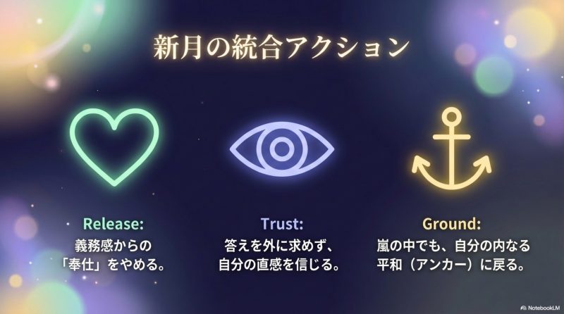 今回のヒーリングを通じて見えてきた、3つの統合アクションです。