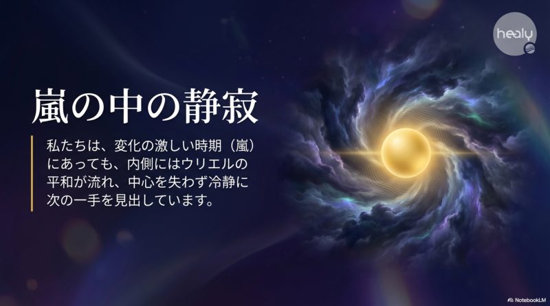 「変化の激しい時期(嵐)にあっても、内側にはウリエルの平和が流れ、中心を失わず冷静に次の一手を見出している」