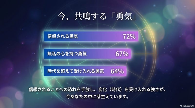 レゾナンス分析では、今この瞬間に最も共鳴するエネルギーが示されました。