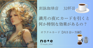 カードの使い方 刻詠珈琲店32杯目「満月の夜にカードを引くと、何か特別な効果があるの?」オラクルカード【向き合い方編】 路地裏にある、アンティークカフェ『刻詠珈琲店』(ときよみこーひーてん)。マスターは東儀 宗介(とうぎ そうすけ)、かつて天使だった頃の名は、メネフィール (Menephiel)。仕事帰りや週末に通う常連OKは、小鳥遊 紬(たかなし つむぎ)... 2025.11.05 AQUA MIXT アクア・ミクスト こよみ&宇宙のリズムカードの使い方